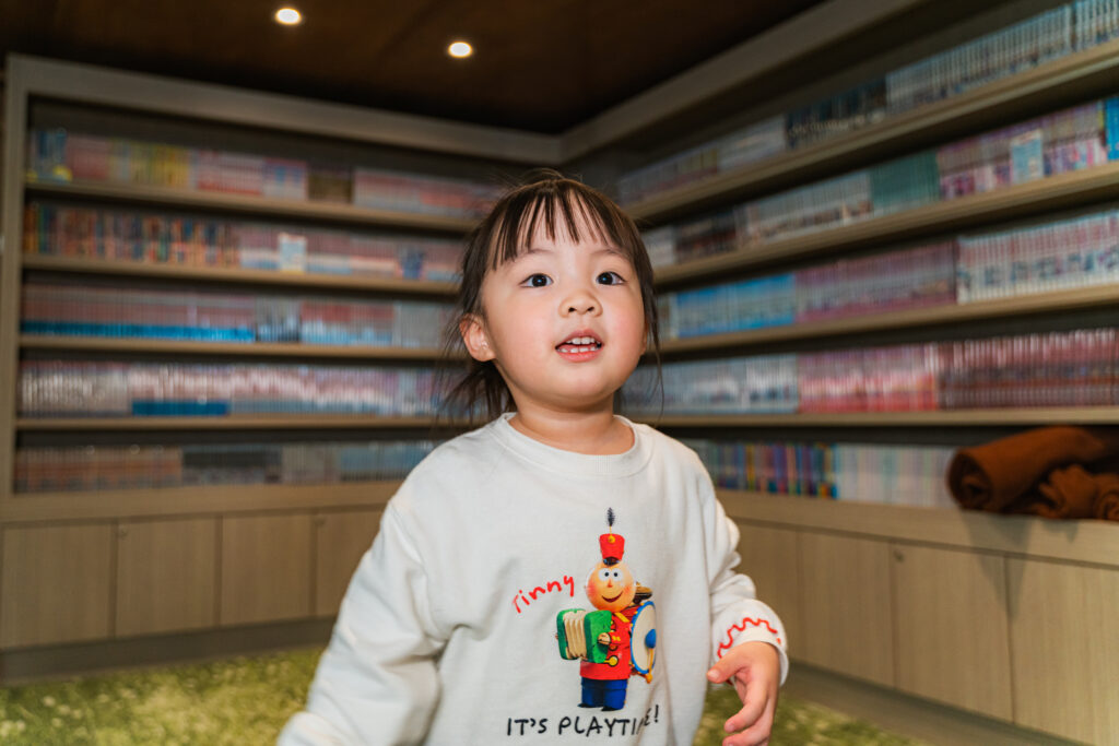 休憩エリアにはコミックコーナーやお子様と一緒に楽しめるボードゲームもご用意。