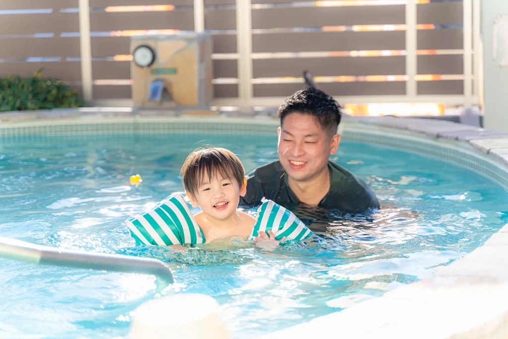 親子で楽しめる温水プール。