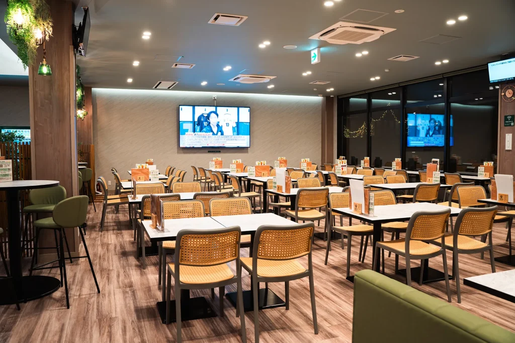 さらにレストランスペースでは、スポーツ観戦を楽しみながら、おふろ・サウナ後の身体に沁みる美味しい食事を。
