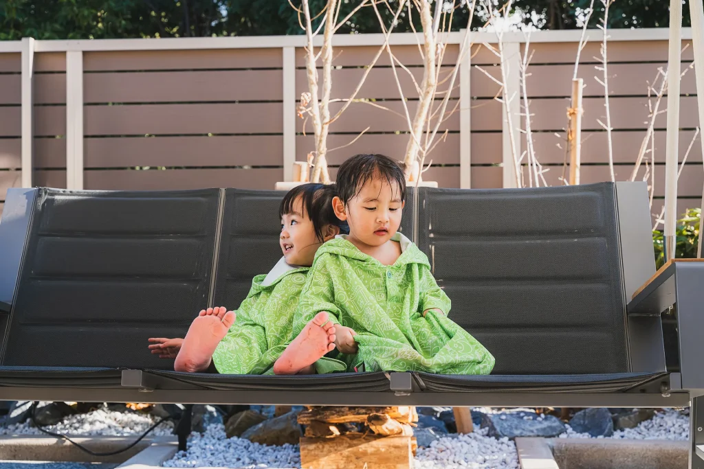 12歳未満のお子様は300円で時間無制限、時間を気にすることなく、ゆったりご利用いただけます。(3歳以下の幼児は無料)。またタオルセット&キッズポンチョ付属のお子様フルセットプランもご用意しておりますので、手ぶらでもお楽しみいただけます。