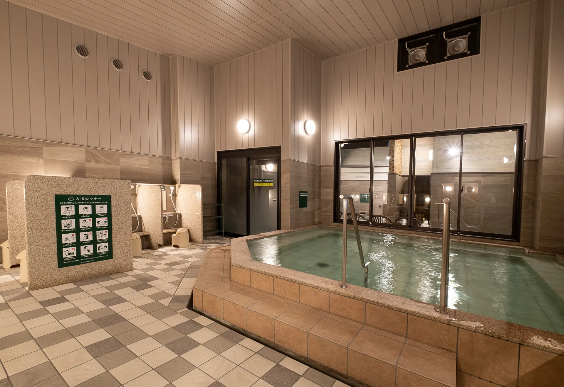 - 7歳以上、または身長120cm以上の異性の浴室混浴および脱衣所の利用はご遠慮ください。