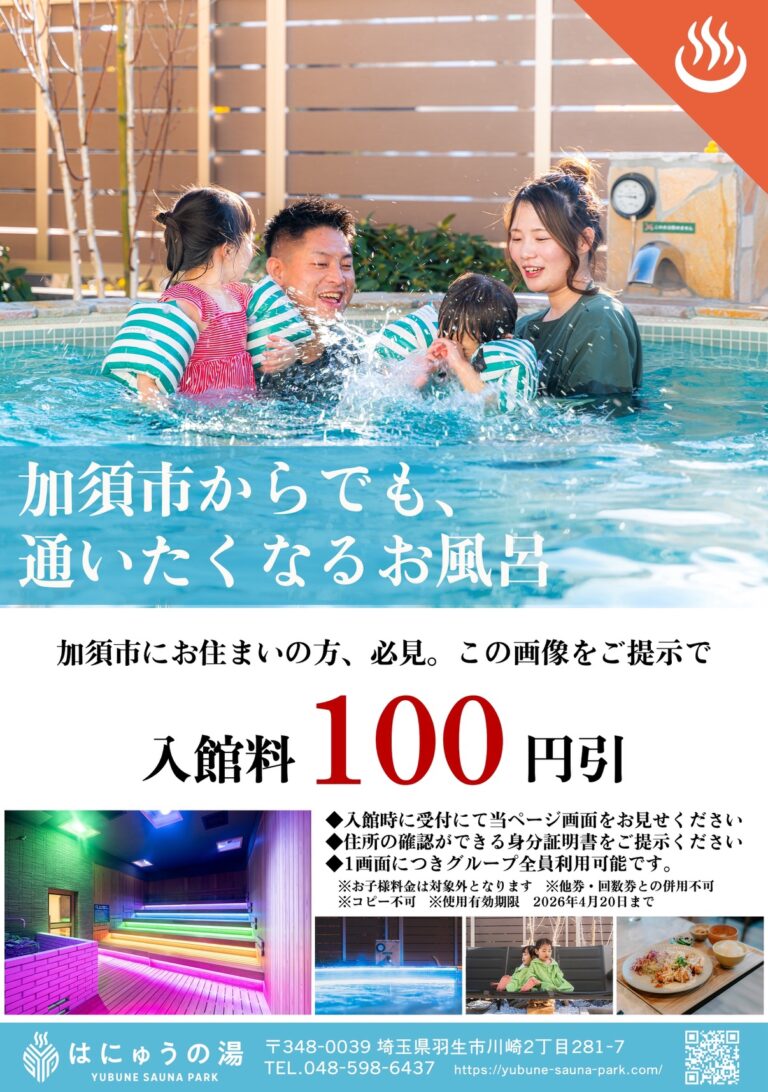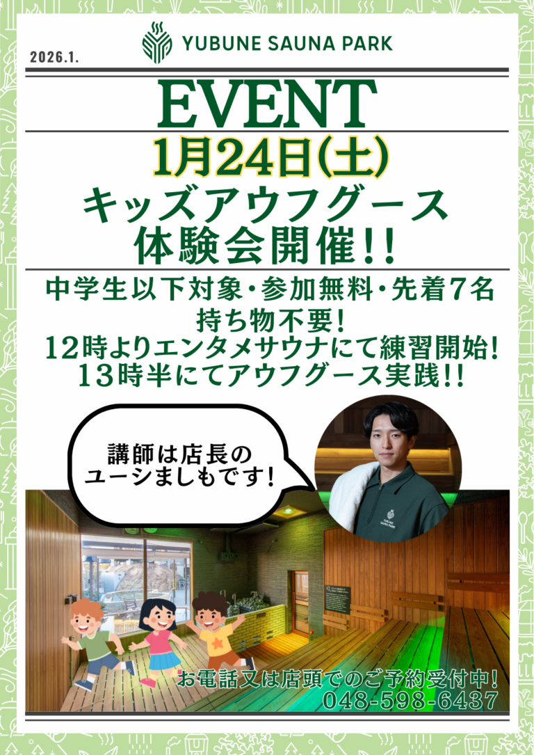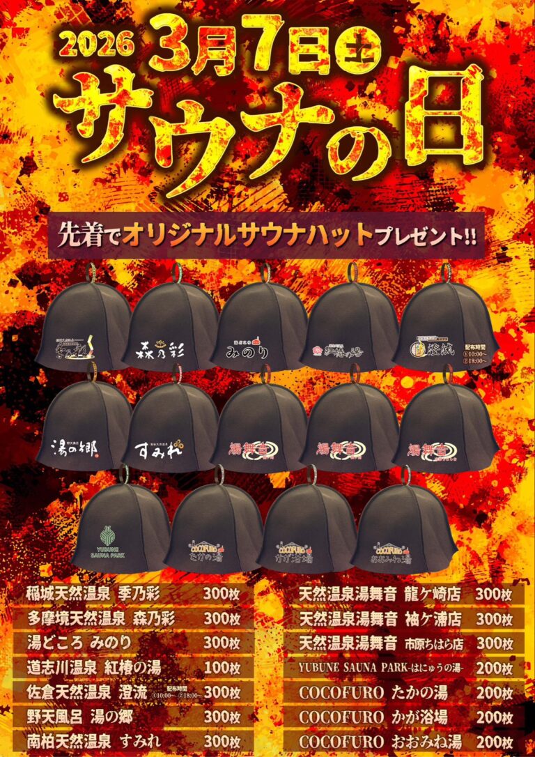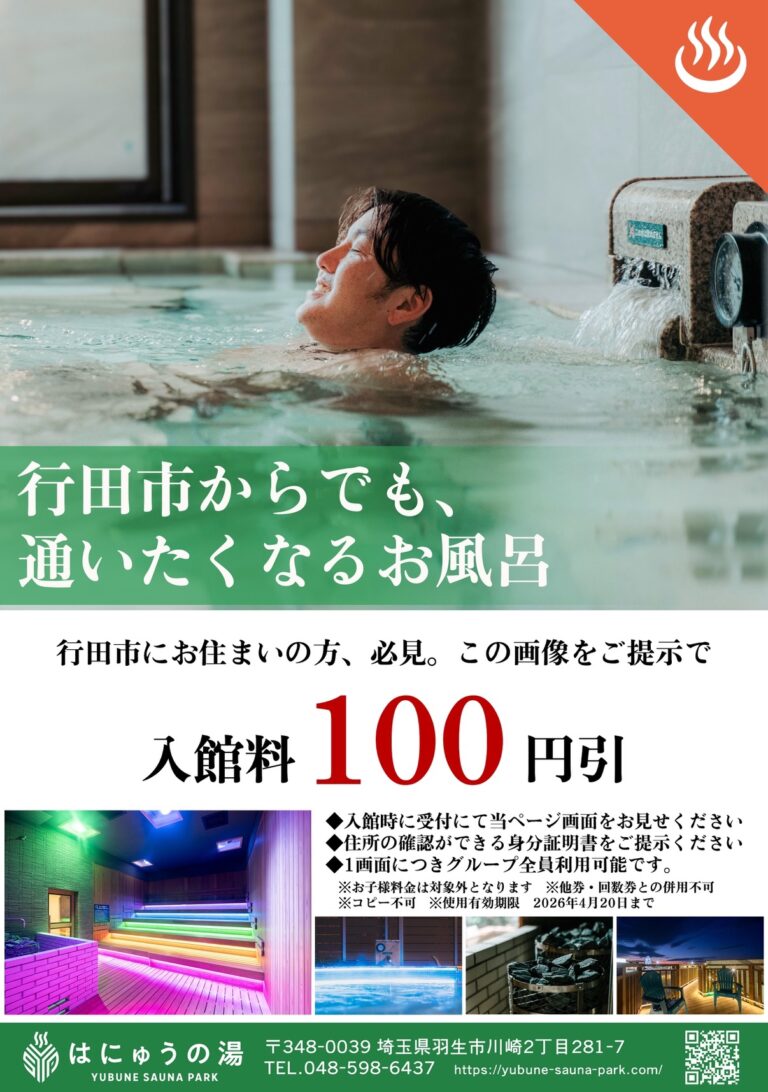イオンモール羽生発。YUBUNE SAUNA PARK -はにゅうの湯-。