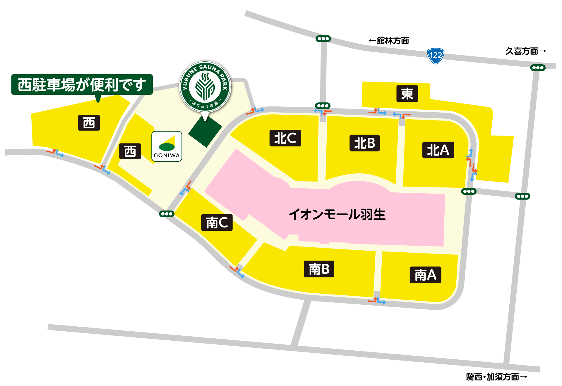イオンモール羽生またはnoNIWAの駐車場をご利用ください