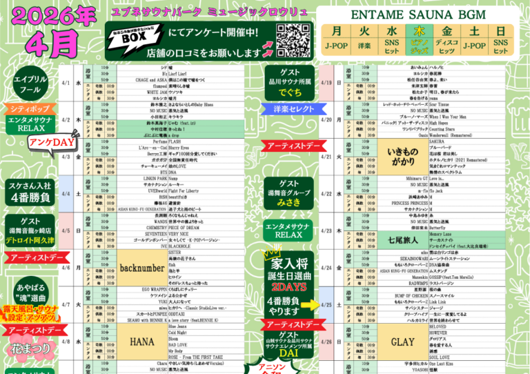 4月&GWミュージックロウリュのお知らせ