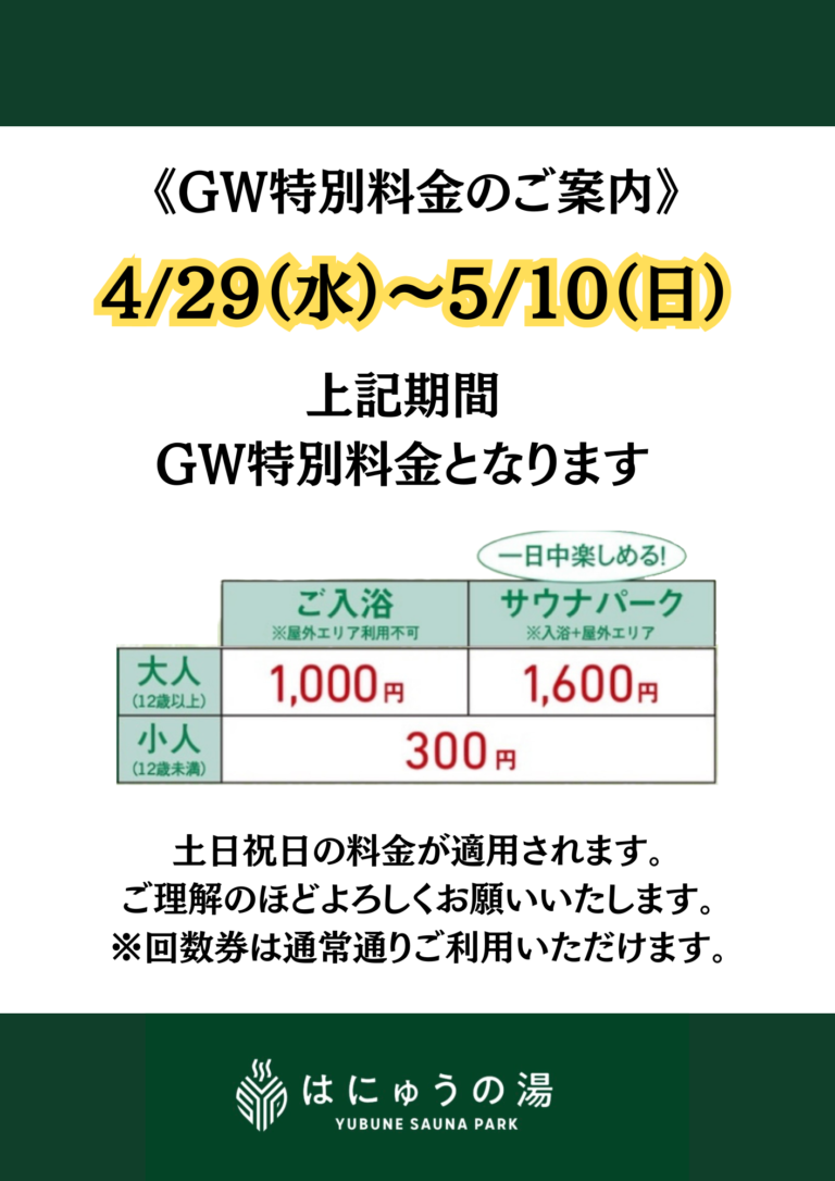 GW特別料金のご案内