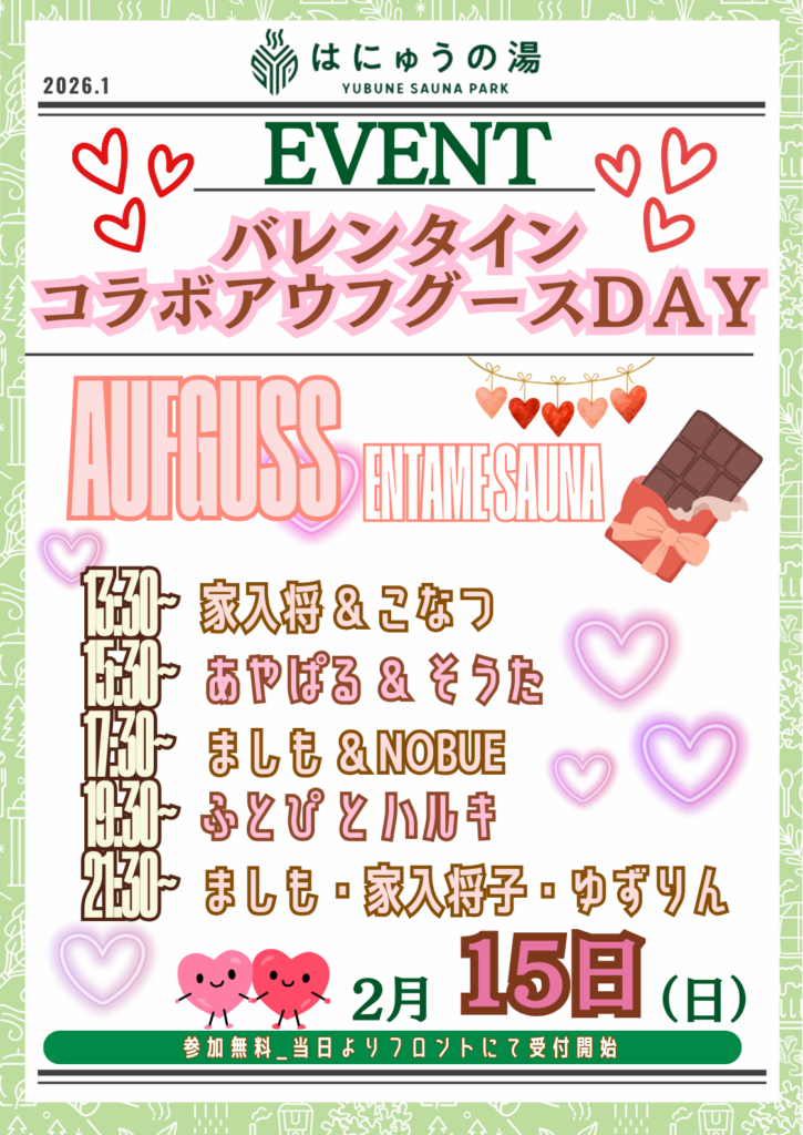 バレンタインコラボイベントとエンタメサウナフェスの詳細は後日発表!
