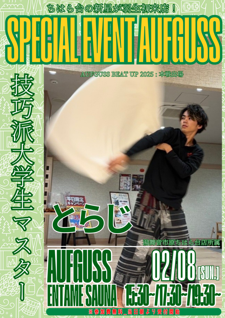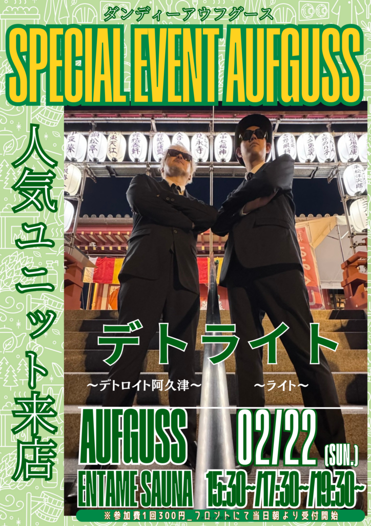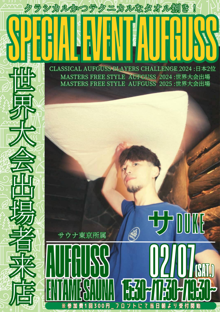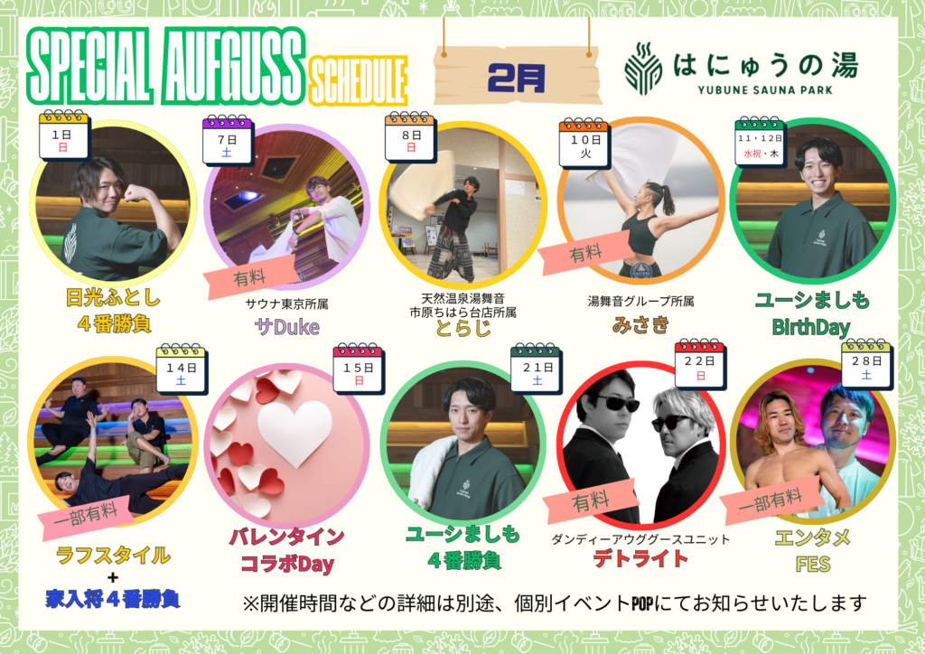 2月のスペシャルアウフグース✨人気ゲストや初登場のゲストをお迎えしてのアウフグースも含め、みなさまがワクワクできるようなイベントをたくさんご用意させていただきます!!