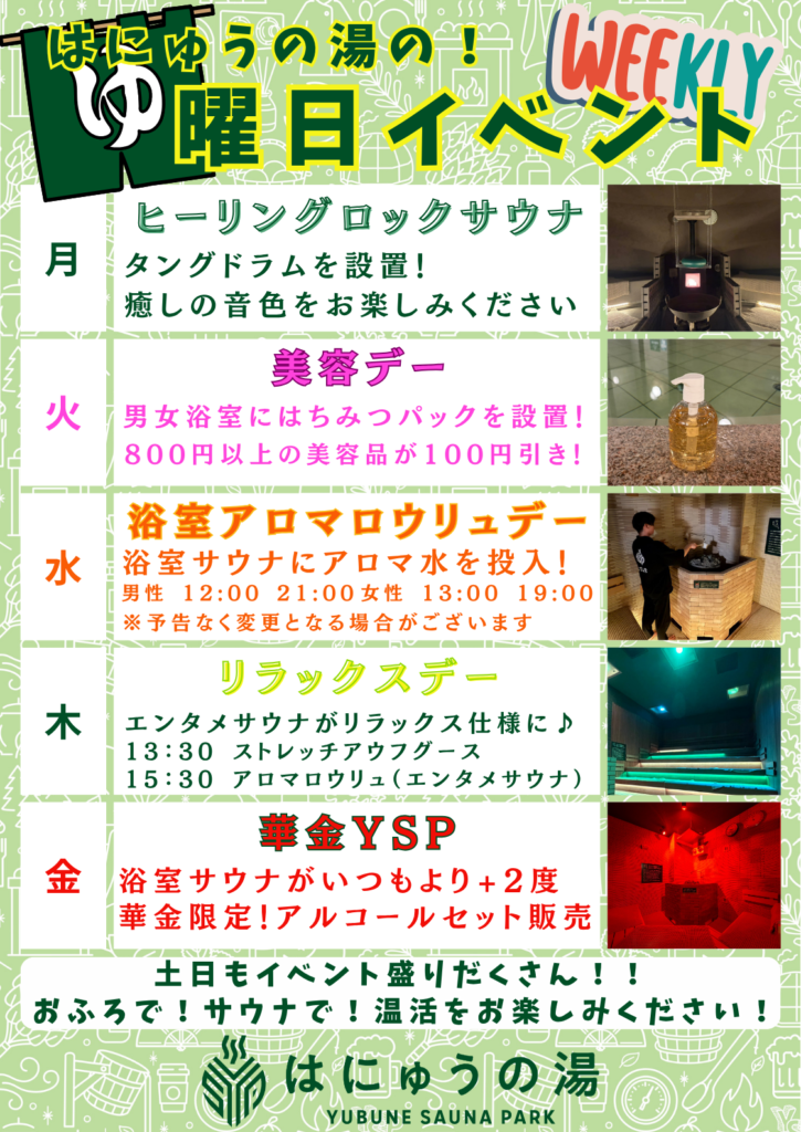 曜日イベントのお知らせ