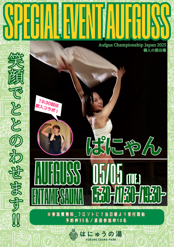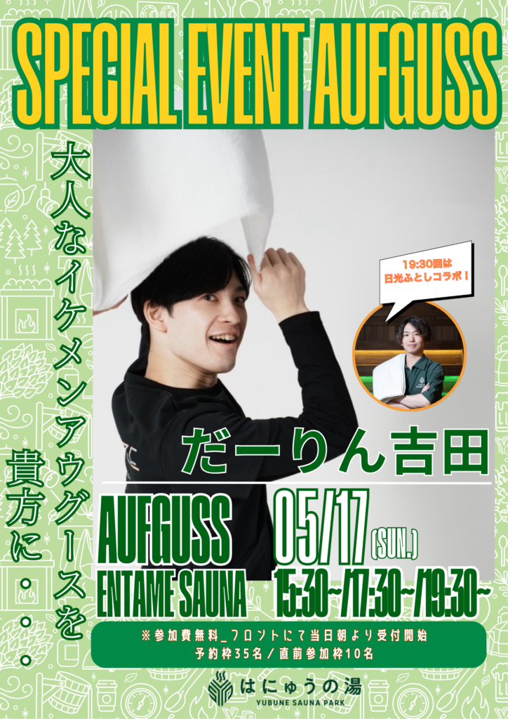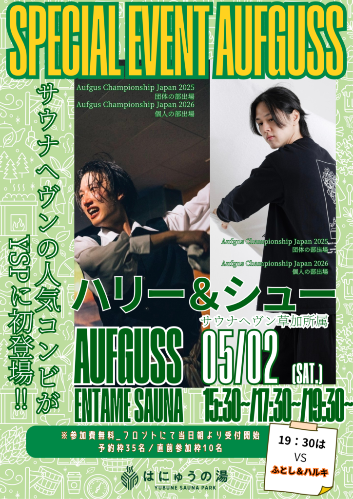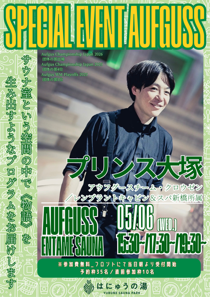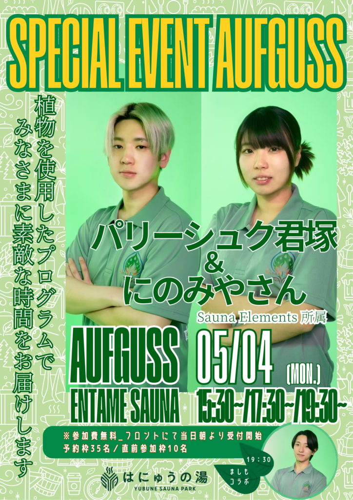 5月もたくさんのゲストがYUBUNE SAUNA PARK ~はにゅうの湯~でアウフグースイベントを実施します!