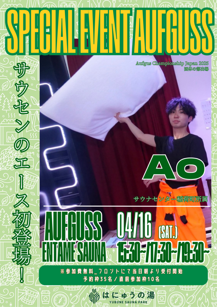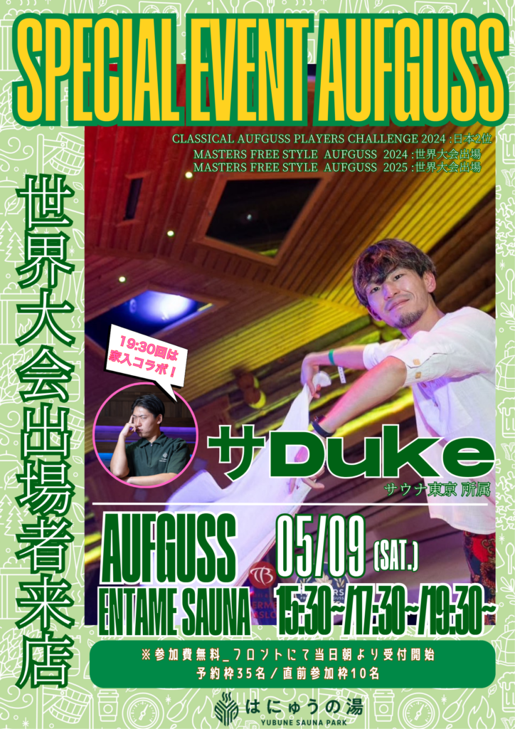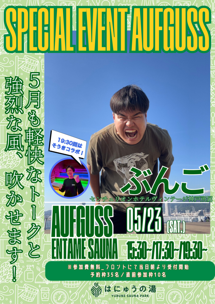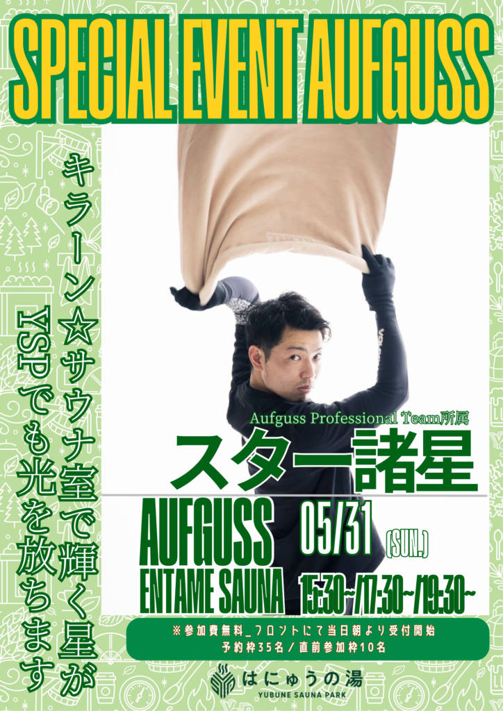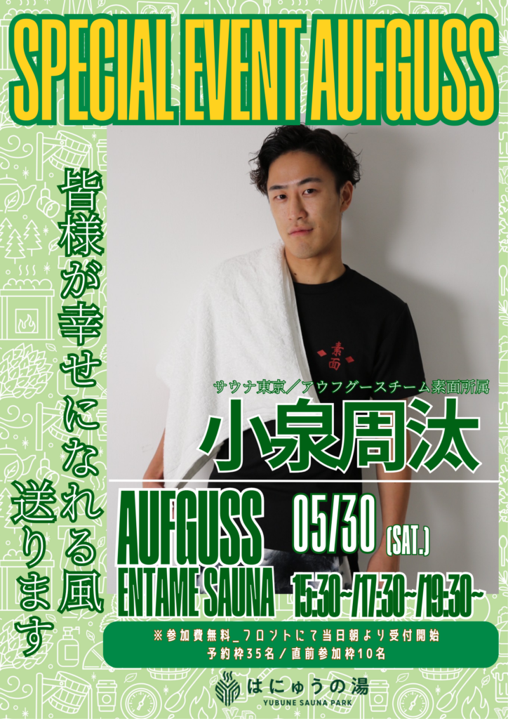 5月もたくさんのゲストがYUBUNE SAUNA PARK ~はにゅうの湯~でアウフグースイベントを実施します!